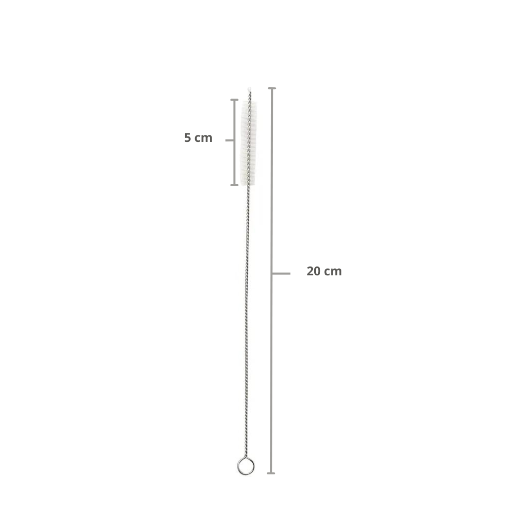 A escovinha de limpeza reutilizável é fabricado em material de aço inoxidável com pontas em nylon reciclável e livre de BPA. A escovinha pode ser levada na bolsa junto com seu canudinho reutilizável. Ideal para todos os canudos, de inox, silicone, bambu e vidro.