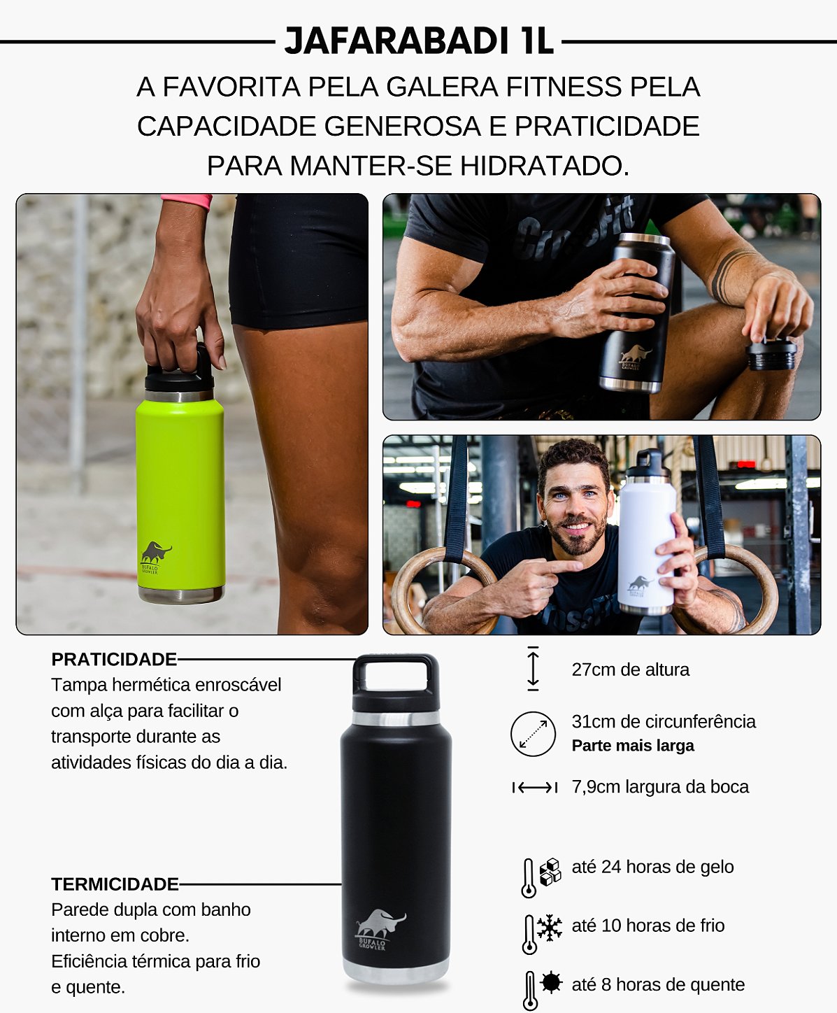 - Isolamento a vácuo que mantém a temperatura e evita suor