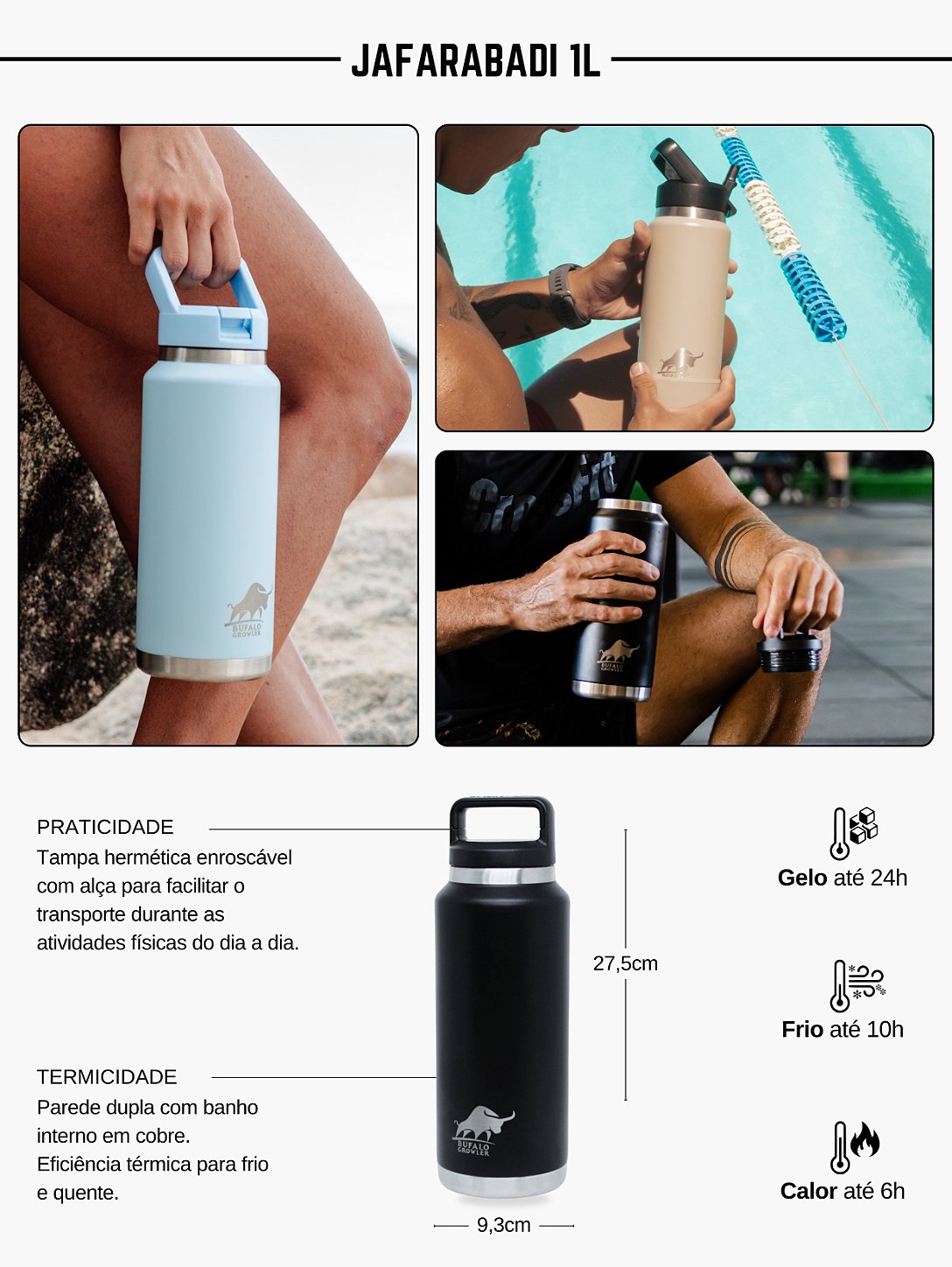 - Isolamento a vácuo que mantém a temperatura e evita suor