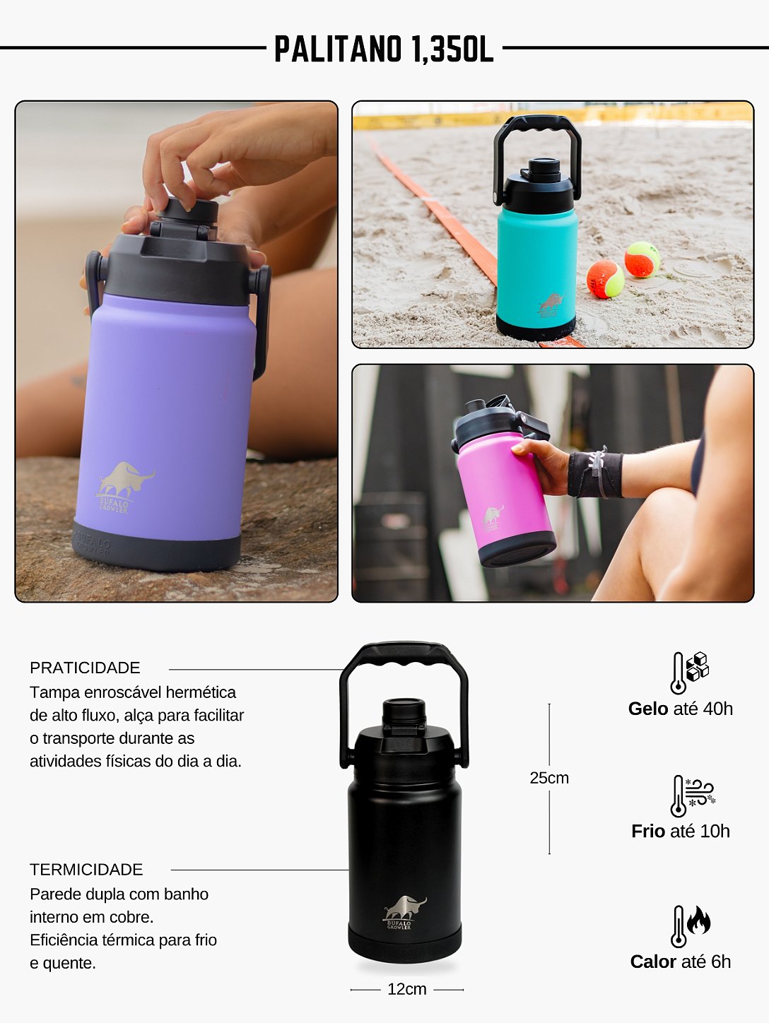 - Isolamento a vácuo que mantém a temperatura e evita suor