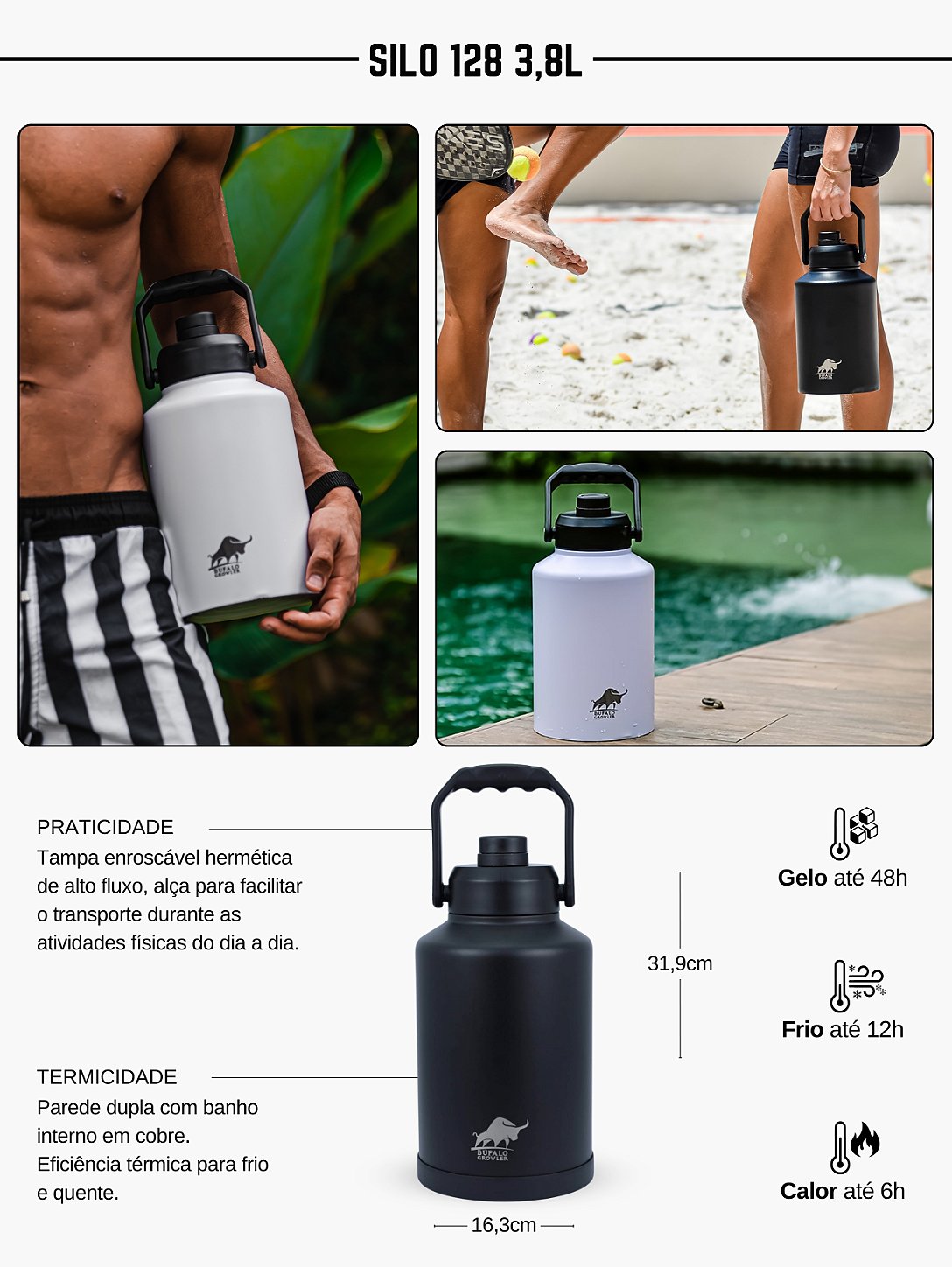 A Búfalo Growler é uma marca brasileira especializada em growleres e copos térmicos criada para quem valoriza qualidade, estilo e praticidade no dia a dia. Nosso atendimento é humanizado — você pode falar diretamente conosco pelo Direct do Instagram, e-mail ou telefone, sempre com uma equipe pronta para ajudar e oferecer a melhor experiência. O grande diferencial da Búfalo está na qualidade e personalização: transforme seu térmico em algo único com nome, frase, logotipo, imagem ou até foto.
